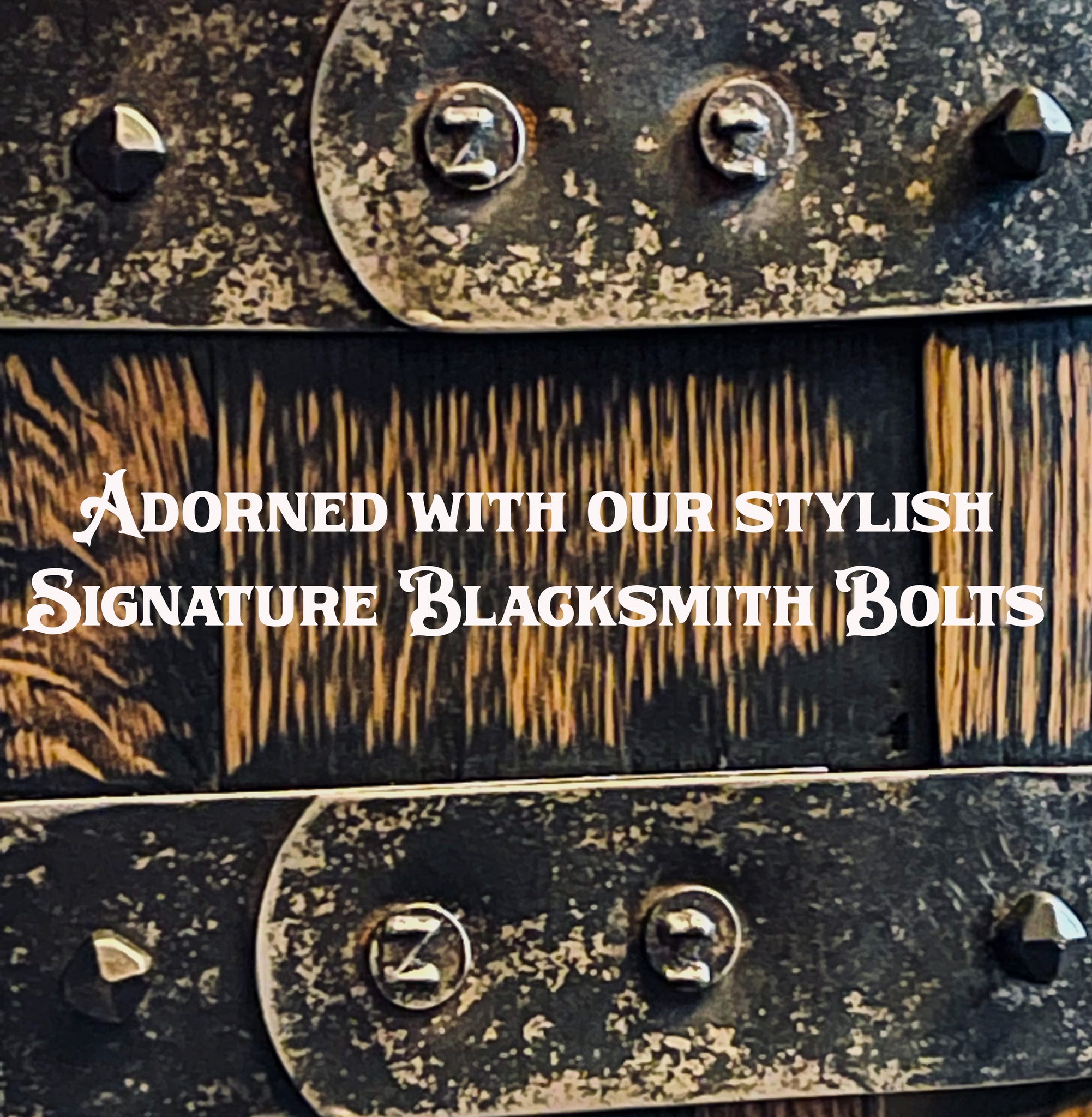 Signature Blacksmith Bolts: Our tables are adorned with our unique blacksmith bolts, a true American craftsmanship touch. Unlike cheap rivets and hardware bolts, these blacksmith bolts add a rustic, authentic feel and serve as a great conversation piece.
