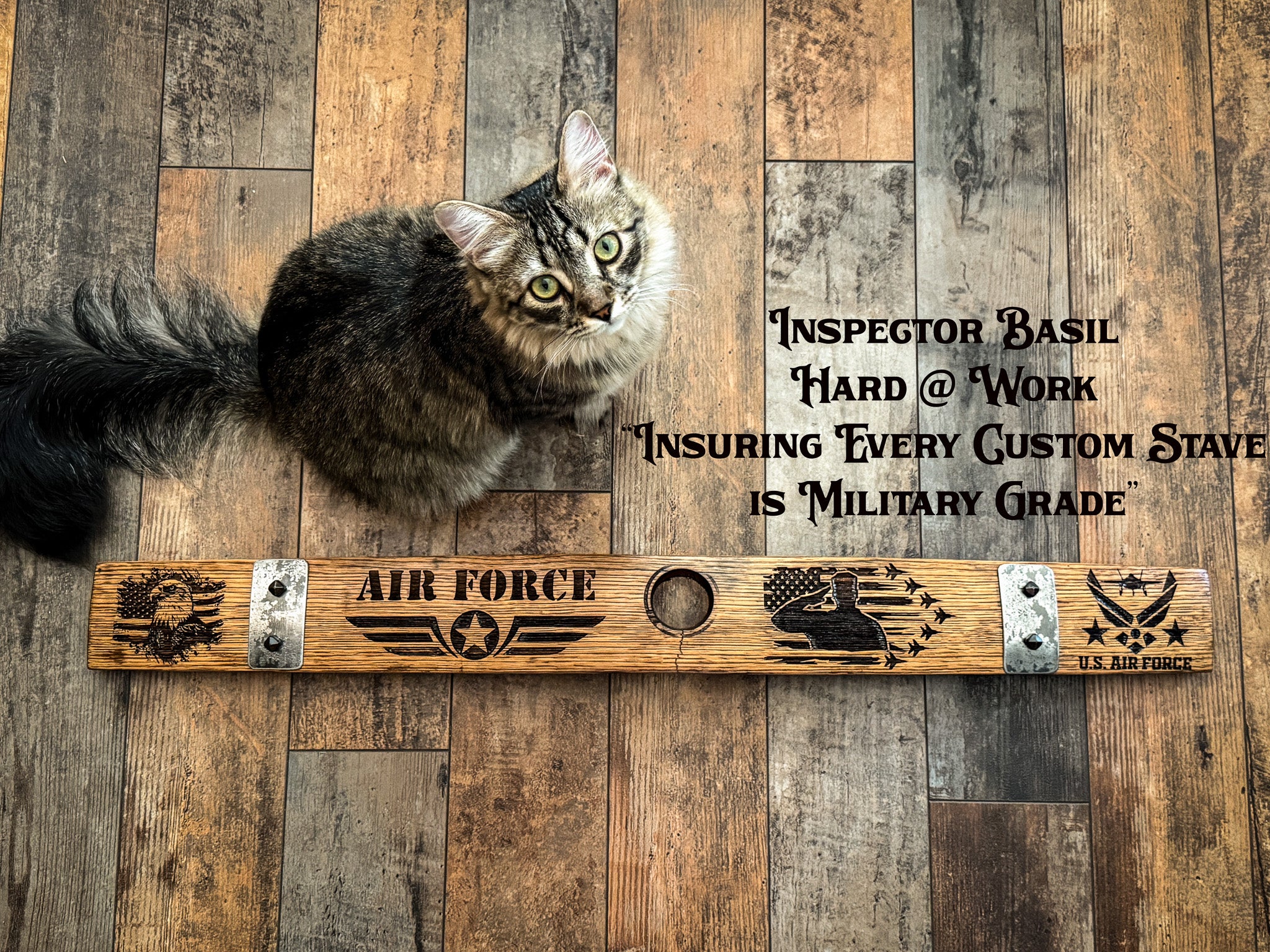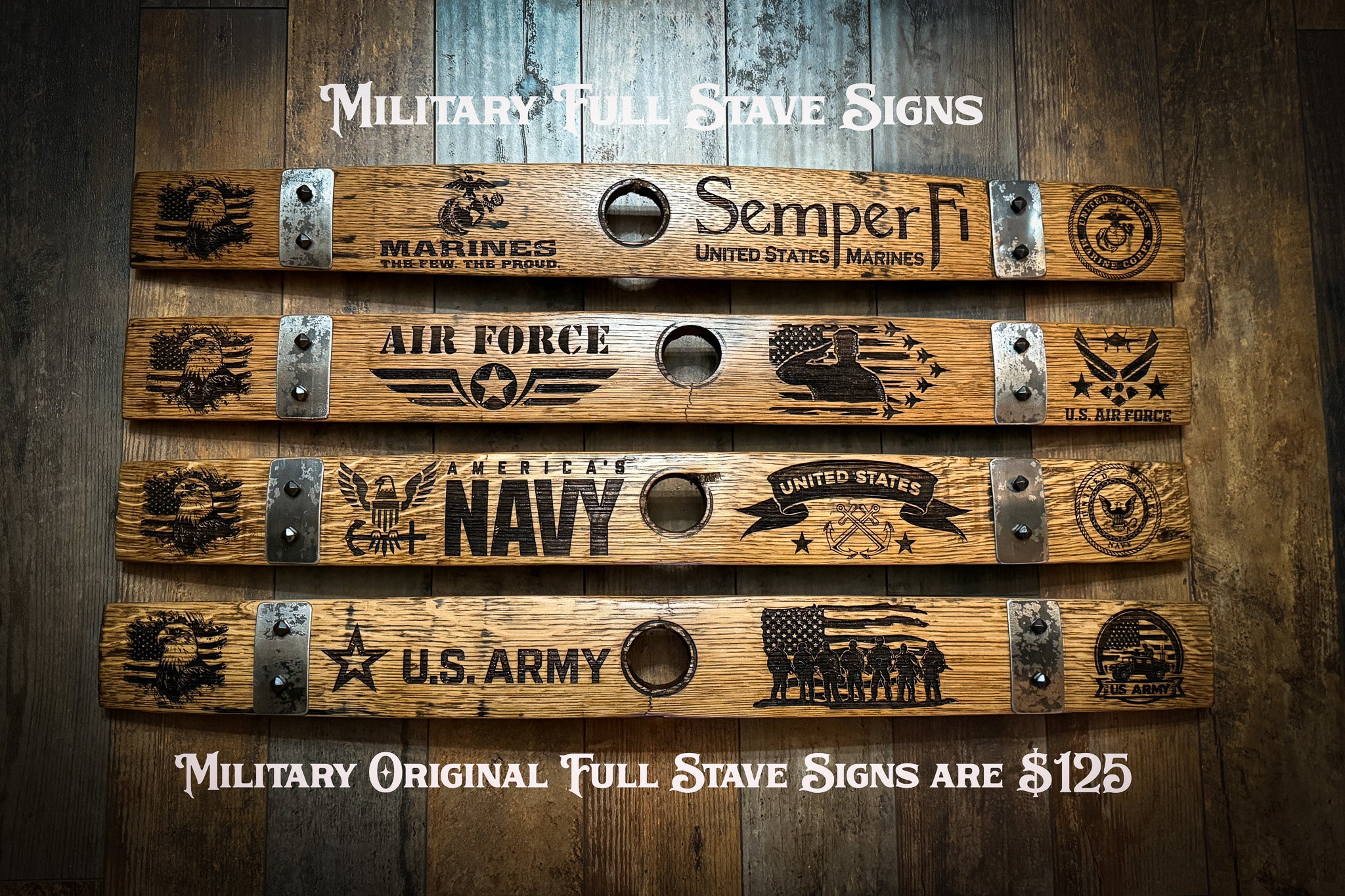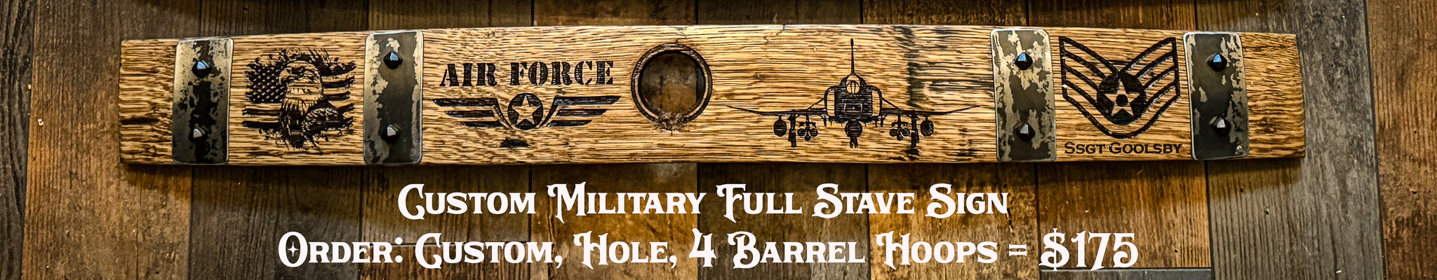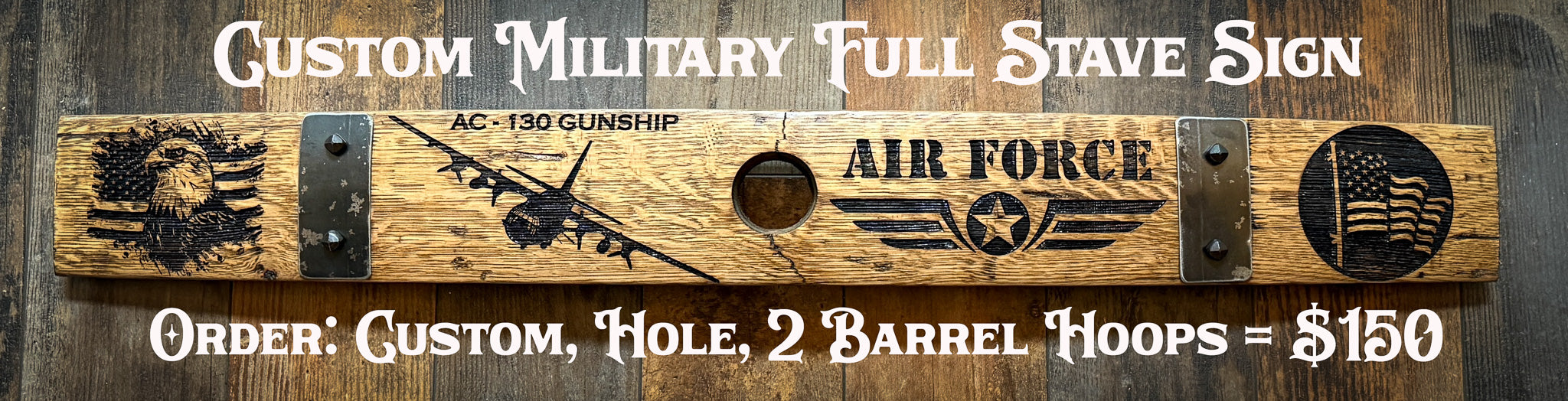 Absolutely! Whether it's a personalized message, a family name, a military tribute, or a favorite logo, we’ll laser engrave your design onto the barrel staves for a truly one-of-a-kind piece.