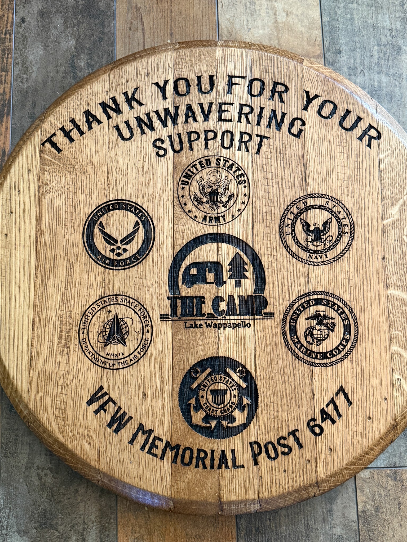 Provide Artwork: Upload artwork to be lasered onto barrel lid. Send to WhiskeyWineandDesign@Protonmail.com.