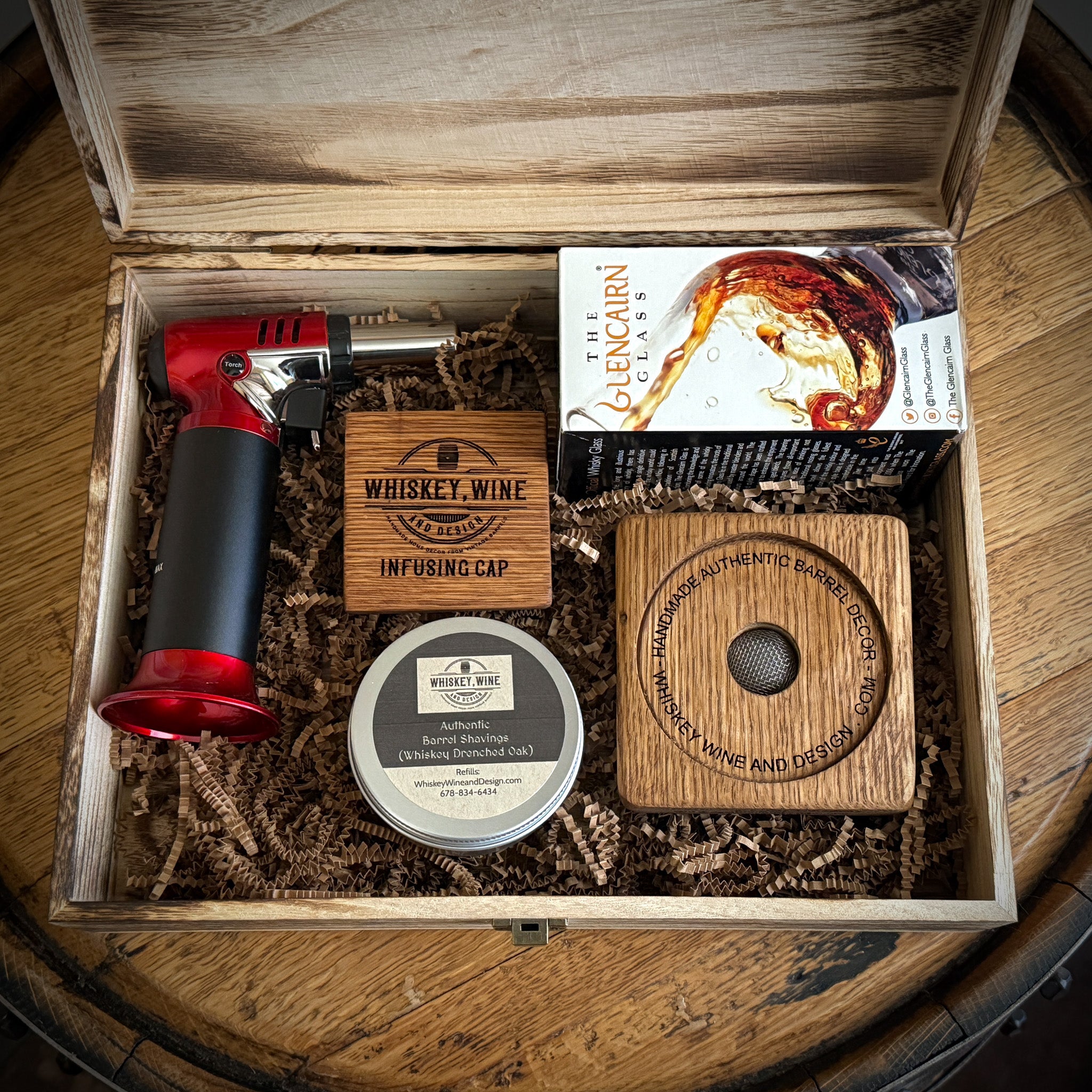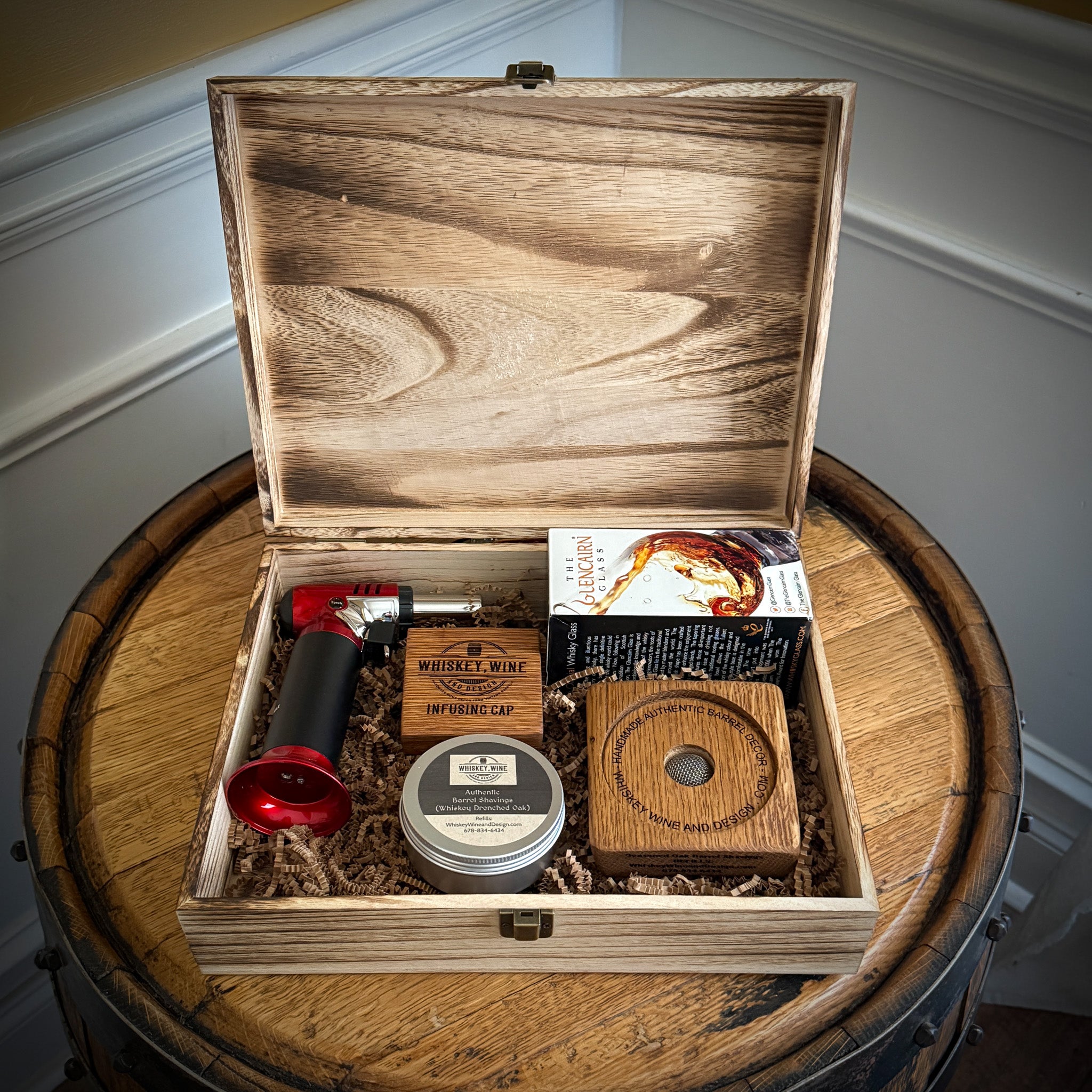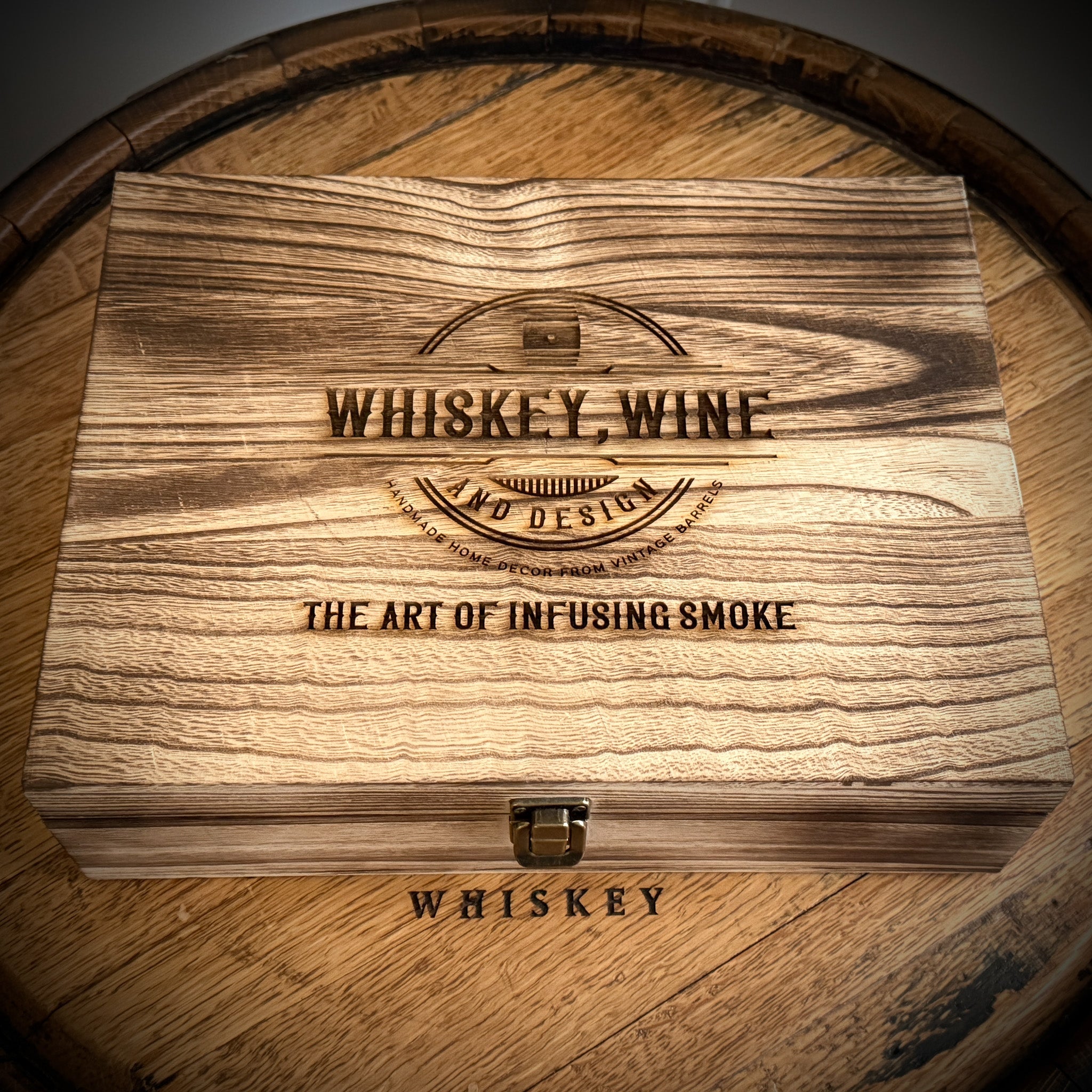 If you are a cocktail smoker enthusiast, it’s time to experience a truly smoked drink with our Whiskey, Wine and Design Smoker. We specialize in handmade whiskey barrel décor. Each of our smokers and the whiskey drenched oak shavings come directly from a recently drained whiskey barrel from a famous distillery in Lynchburg, TN.